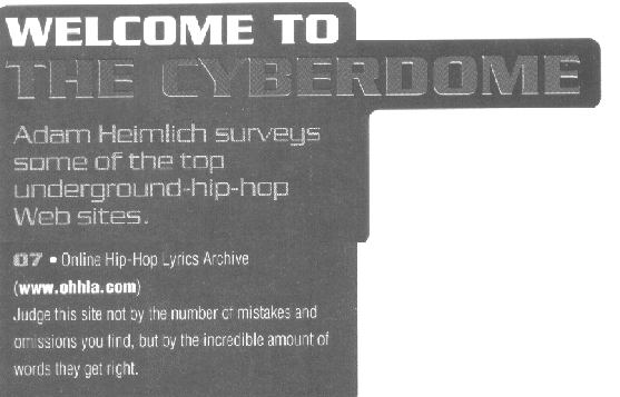 "07. Online Hip-Hop Lyrics Archive (www.ohhla.com) Judge this site not by the