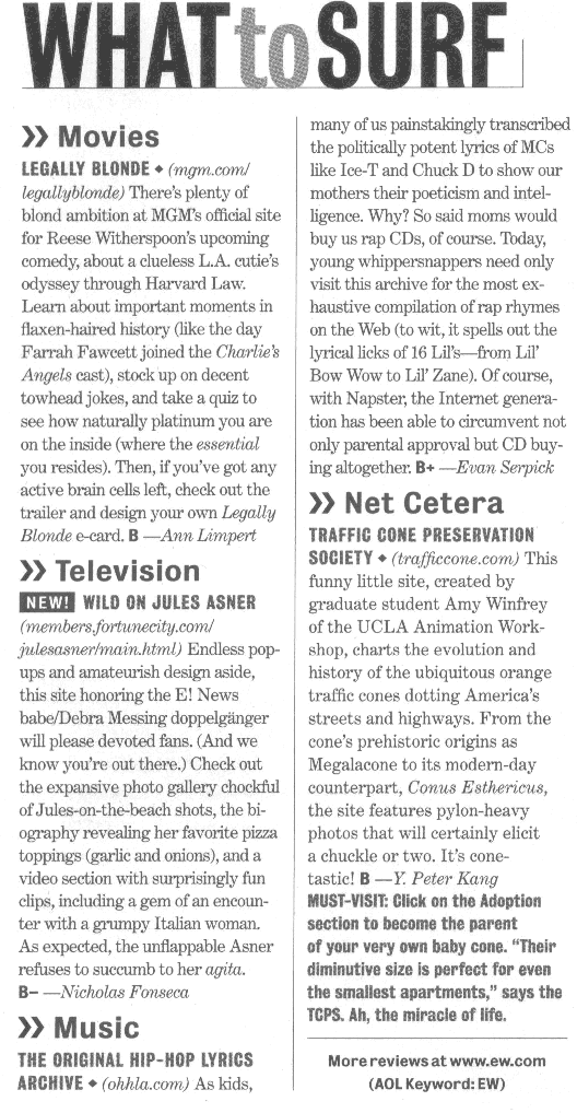 "Entertainment Weekly," June 22, 2001 - p. 93 (Cover: Sex and the City).