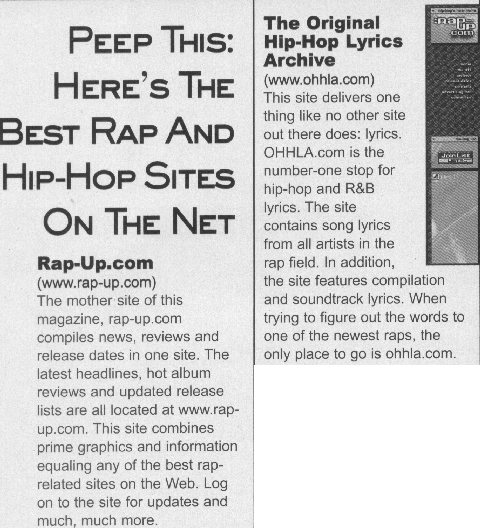 "The OHHLA.com database truly is the most extensive and accurate hip-hop lyrics archive on the web. -- Ill Will aka Da Boy Wonder"