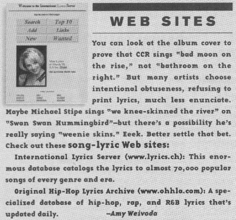 rap and R&B lyrics that's updated daily. -- Amy Weivoda"